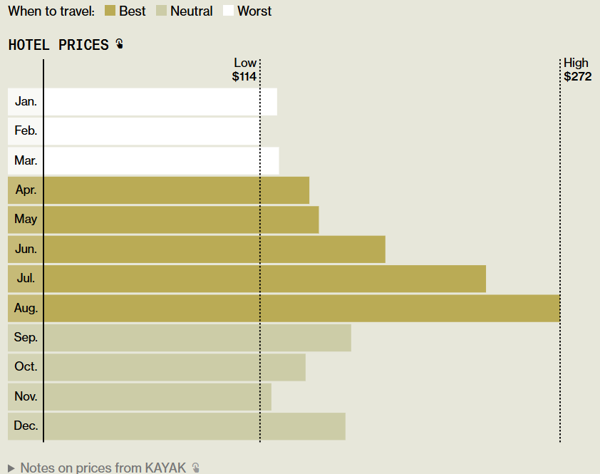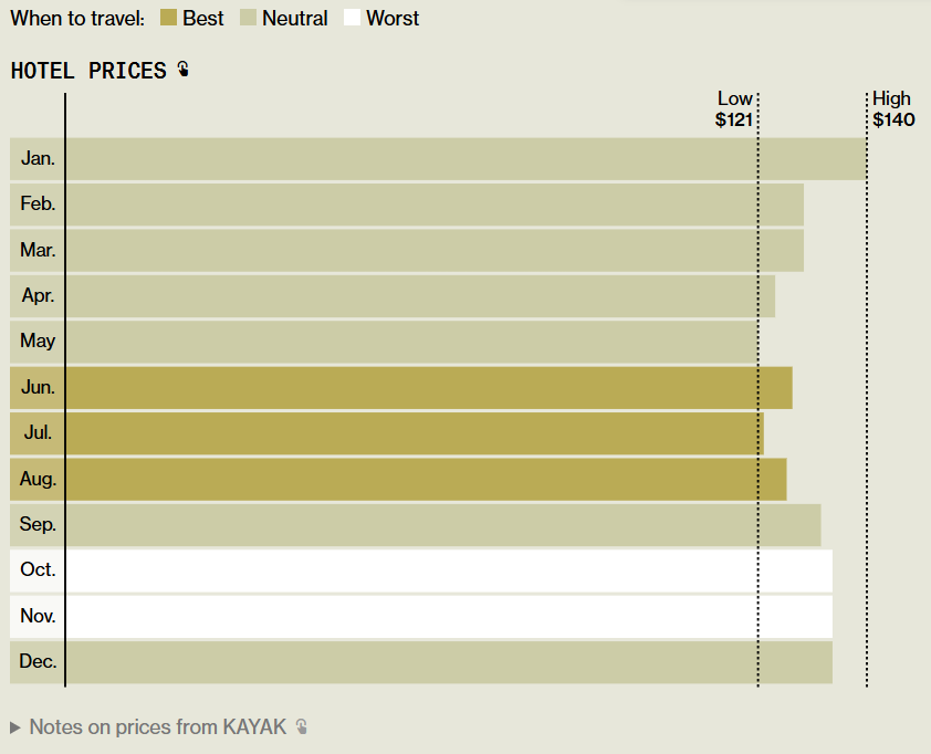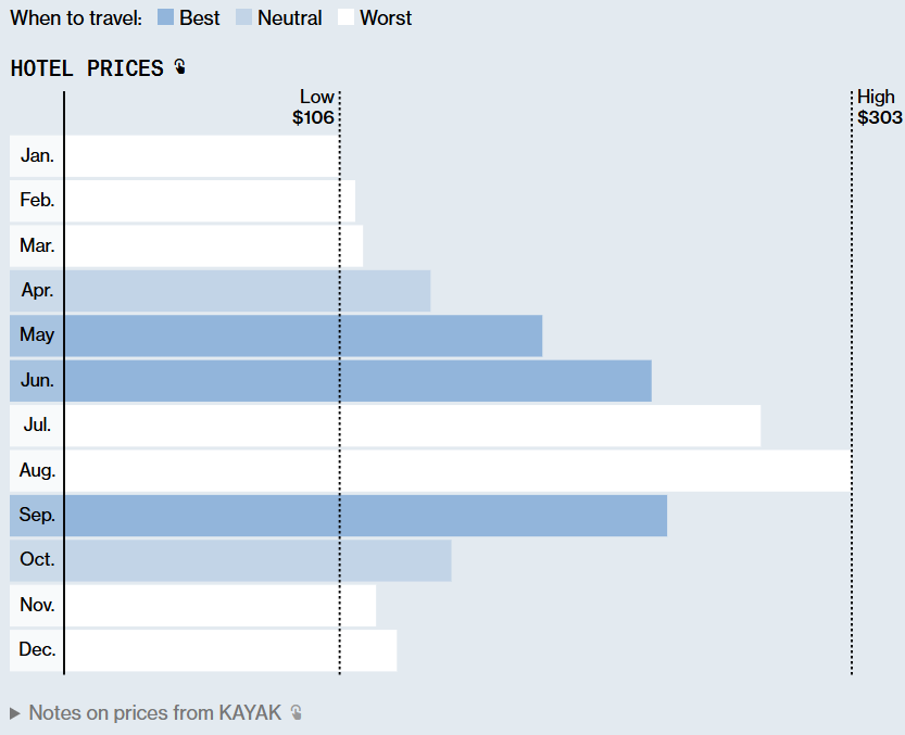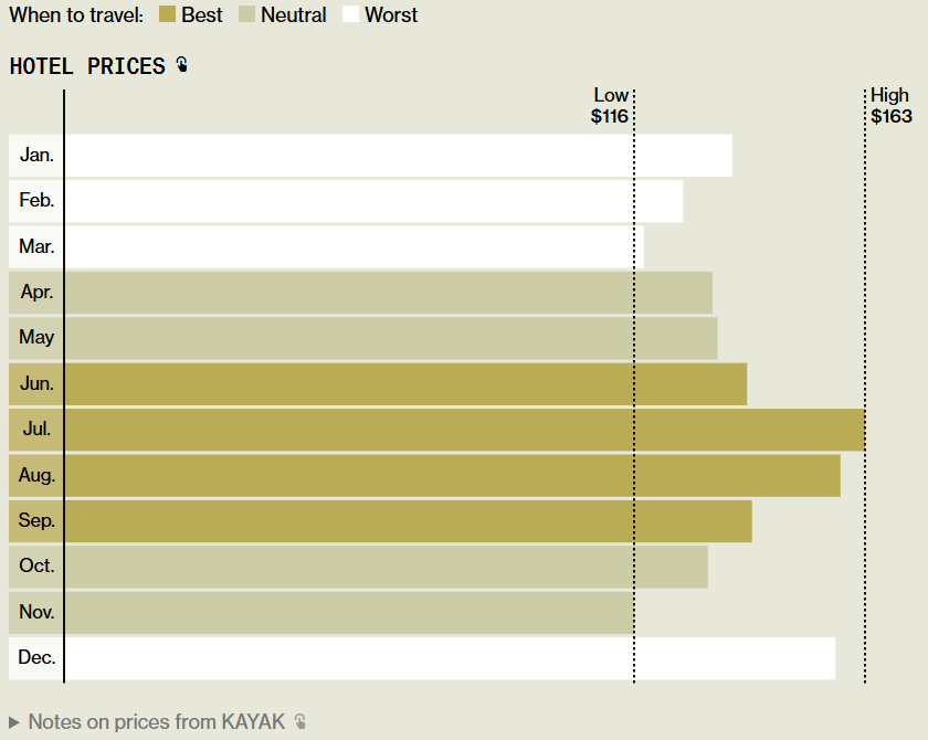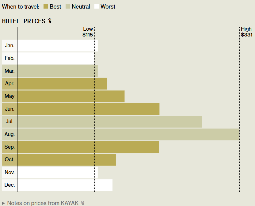 Πότε να μην πάτε: Αποφύγετε τον Ιούλιο και τον Αύγουστο, όταν επισκέπτονται τον προορισμό μεγάλα πλήθη τουριστών και επικρατούν υψηλές τιμές στα ξενοδοχεία.