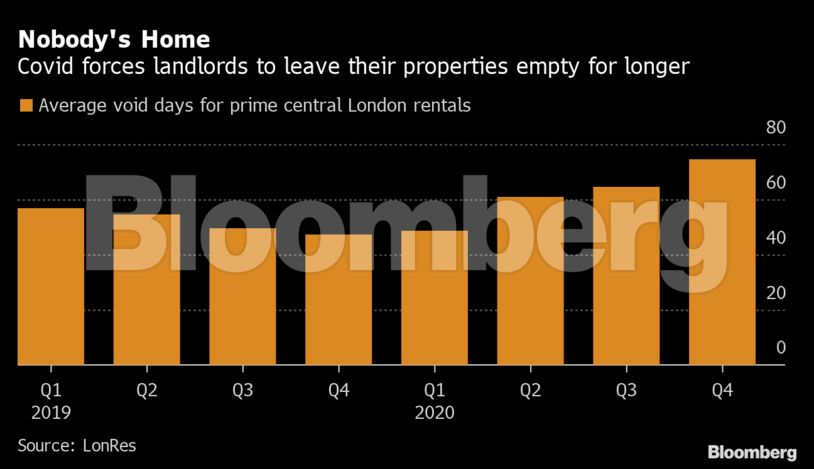 Τα ακίνητα στις ακριβότερες περιοχές της πρωτεύουσας παραμένουν άδεια για τουλάχιστον δύο μήνες πριν βρουν ενοίκους, περίοδος-ρεκόρ, σύμφωνα με την εταιρεία δεδομένων ακινήτων LonRes. Ολα αυτά, τη στιγμή που οι τιμές των ενοικίων στην πόλη βρίσκονται στο ναδίρ δεκαετίας λόγω της πανδημίας.