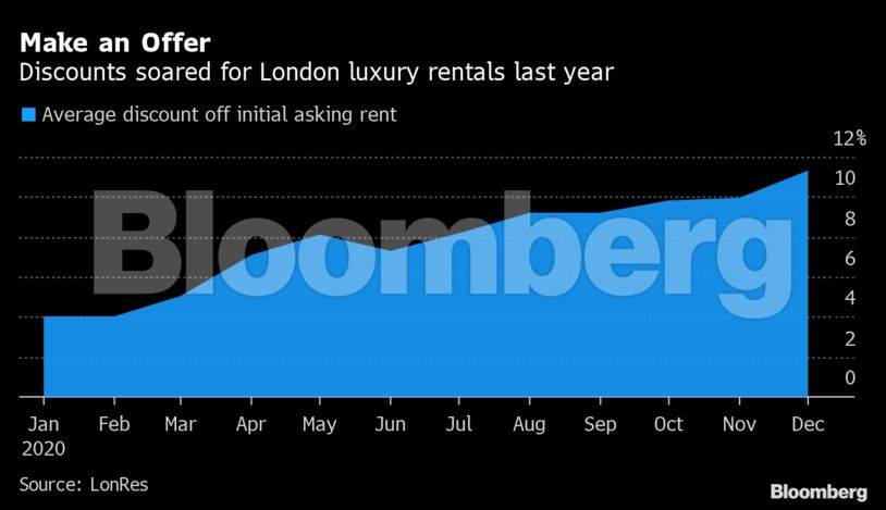 Η μαζική έξοδος των εργαζόμενων σε γραφεία και των τουριστών έχουν πλήξει τρέντι περιοχές όπως το Mayfair και το Knightsbridge, ωθώντας τους ιδιοκτήτες σε μείωση των ενοικίων. Ο αριθμός των λουξ διαμερισμάτων προς ενοικίαση έχει αυξηθεί κατά 75% σε σχέση με το προηγούμενο έτος.