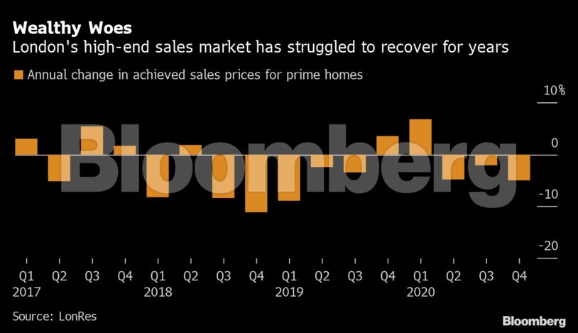 Οι ιδιοκτήτες ακινήτων που θέλουν να πουλήσουν τα ακίνητά τους δεν τα πάνε και τόσο καλύτερα. Πριν από τον κορωνοϊό, η αγορά ακινήτων του Λονδίνου βίωνε δύο τρίμηνα ανάπτυξης, πριν την κατάρρευση σε νέα χαμηλά.