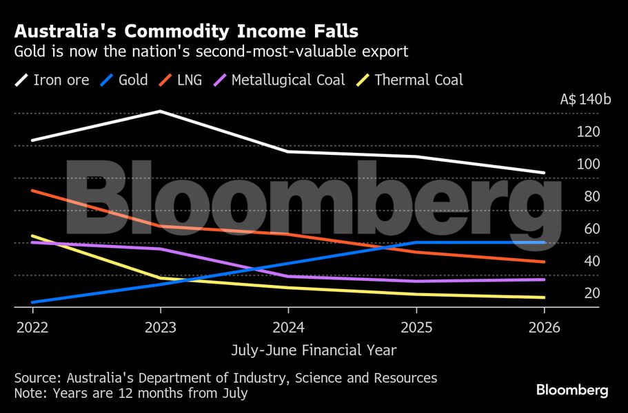 Τα έσοδα από τον χρυσό προβλέπεται να φθάσουν τα 60 δισεκατομμύρια δολάρια Αυστραλίας (39,6 δισεκατομμύρια δολάρια ΗΠΑ) το 2025-26 — δηλαδή κατά την περίοδο των 12 μηνών έως τον επόμενο Ιούνιο — από 47 δισ. δολάρια Αυστραλίας το προηγούμενο έτος, σχεδόν το διπλάσιο από το επίπεδο δύο χρόνια πριν, σύμφωνα με έκθεση του Υπουργείου Βιομηχανίας, Επιστημών και Πόρων. Η αύξηση αυτή αναμένεται να αντισταθμίσει εν μέρει την αναμενόμενη πτώση των εσόδων από άλλα εμπορεύματα, όπως το σιδηρομετάλλευμα.