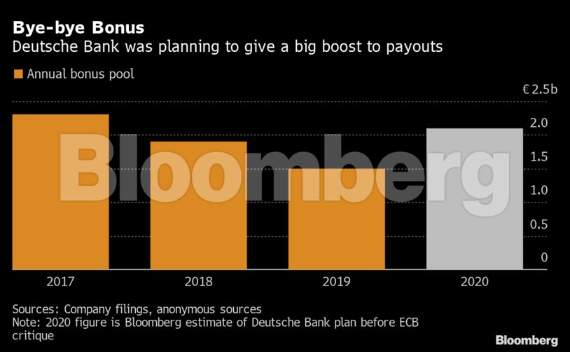 H Deutsche Bank AG προχώρησε σε μειώσεις του μπάτζετ για μπόνους μετά από την αντίδραση της ΕΚΤ, υποδεικνύοντας τις μισθολογικές προκλήσεις που επιβάλλει η πανδημία ακόμη και στις τράπεζες που παραμένουν ακλόνητες.