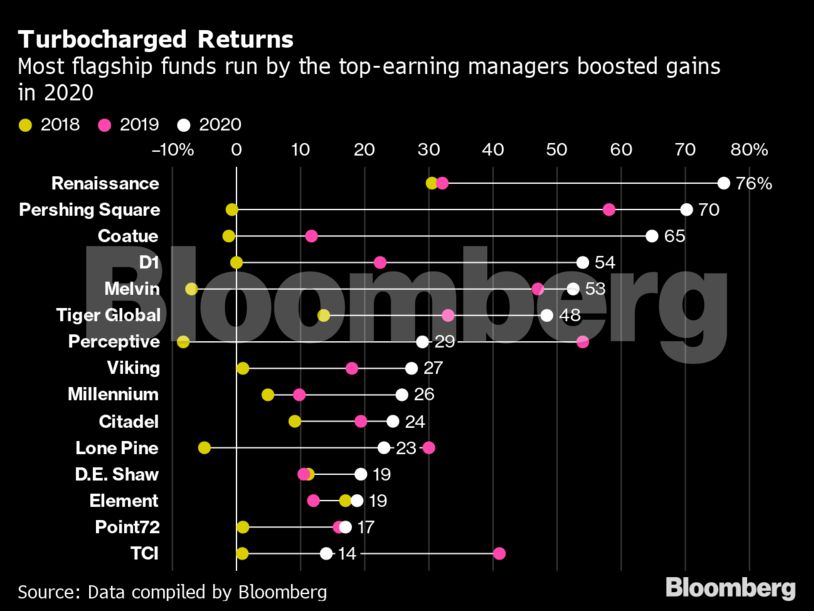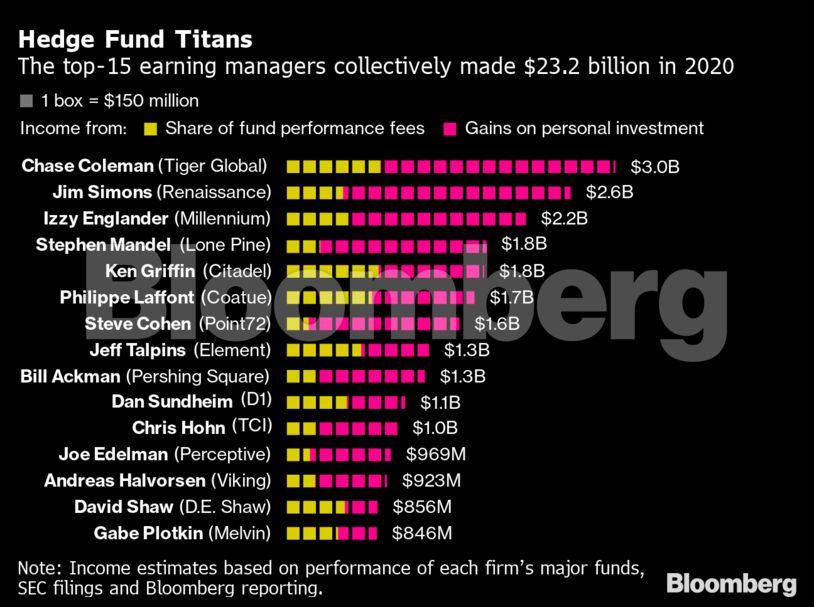Το συνολικό ποσό κυμαίνεται στα $23,3 δισ., και είναι το ποσό που οι 15 μεγαλύτεροι hedge fund managers κέρδισαν το 2020.