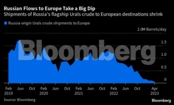 Σύμφωνα με το Bloomberg, τον Μάρτιο η Ευρωπαϊκή Ένωση εισήγαγε μόλις 95.000 βαρέλια ρωσικού πετρελαίου ανά ημέρα, σε σχέση με τα 1,2 εκατ. βαρέλια/ημέρα του Φεβρουαρίου του 2022. Όλα τα ρωσικά φορτία μεταφέρθηκαν μέσω Βουλγαρίας, η οποία έχει εξαιρεθεί από τις επιβεβλημένες ευρωπαϊκές κυρώσεις κατά της εισαγωγής ρωσικού πετρελαίου.