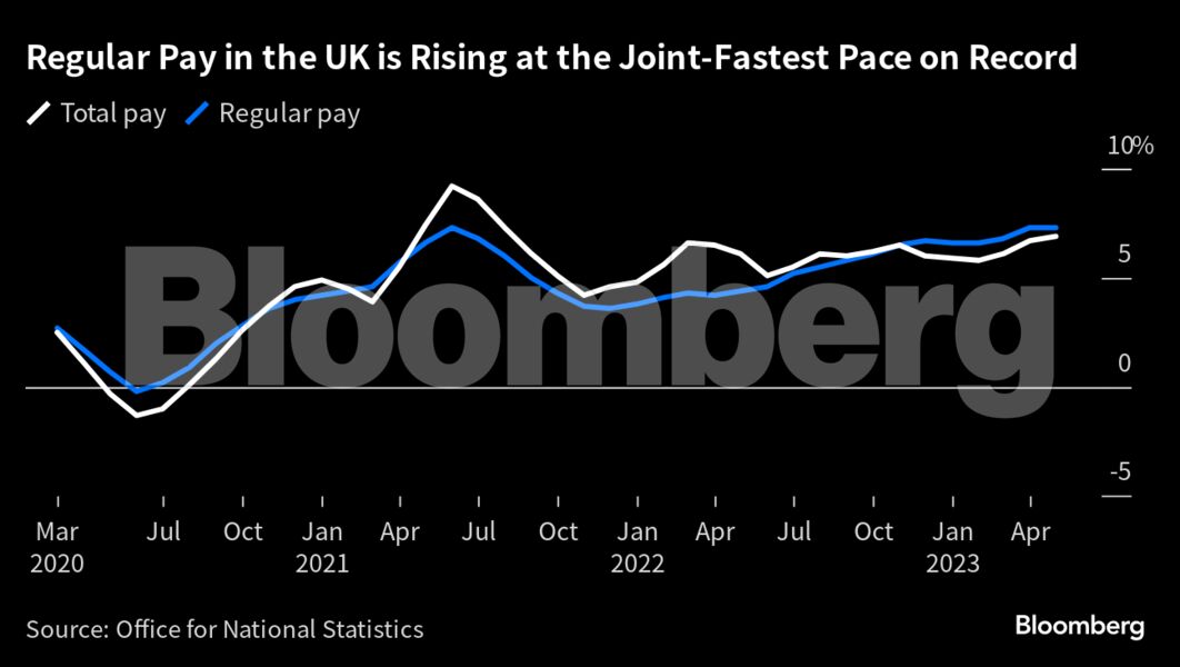 Οι μισθοί στο Ηνωμένο Βασίλειο αυξήθηκαν περισσότερο από το αναμενόμενο σε επίπεδο που, όπως δήλωσε ο διοικητής της Τράπεζας της Αγγλίας Άντριου Μπέιλι, τροφοδοτούν τον πληθωρισμό, διατηρώντας την πίεση για περαιτέρω αυξήσεις επιτοκίων.