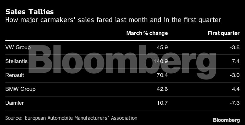 Η γενικότερη αυτοκινητοβιομηχανία επίσης βίωσε και μια μεγάλη αναδιανομή κατά τη διάρκεια της πανδημίας, μέσω της συγχώνευσης του γαλλικού PSA Group με την Fiat Chrysler ως προς τη δημιουργία της Stellantis. Περίπου το 47% των νέων εγγεγραμμένων οχημάτων το πρώτο τρίμηνο ήταν VW ή Stellantis.
