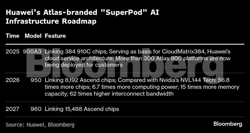 Για να κατασκευάσει το λεγόμενο σούπερ σύμπλεγμα, η Huawei σχεδιάζει να αυξήσει τις ταχύτητες σύνδεσης και πρόσβασης στη μνήμη εντός των τσιπ. Ισχυρίζεται ότι διαθέτει μια αρχιτεκτονική μνήμης υψηλού εύρους ζώνης που μπορεί να ενισχύσει την ικανότητα ενός επεξεργαστή να μεταφέρει δεδομένα μεταξύ διαφορετικών εξαρτημάτων. Ο Σου ισχυρίστηκε ότι το Ascend 970, που έχει προγραμματιστεί για το 2028, θα διαθέτει ταχύτητα διασύνδεσης 4 terabit ανά δευτερόλεπτο. Η Nvidia προσφέρει επί του παρόντος ταχύτητα διασύνδεσης 1,8 terabit ανά δευτερόλεπτο.