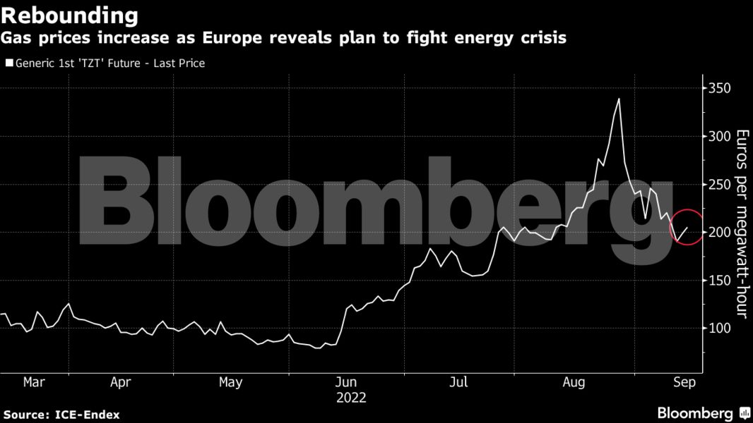 Σε αυτό το κλίμα, τα συμβόλαια μελλοντικής εκπλήρωσης του ευρωπαϊκού σημείου αναφοράς αυξήθηκαν έως και 6,9%, μετά και την άνοδο κατά 4,2% την Τρίτη. Όπως σημειώνει το πρακτορείο Bloomberg, ο εκτελεστικός βραχίονας της Ευρωπαϊκής Ένωσης παρουσίασε μία δέσμη μέτρων που έχουν σχεδιαστεί για να βάλουν φρένο στην άνευ προηγουμένου ενεργειακή κρίση που με τη σειρά της, τροφοδοτεί τον πληθωρισμό, βλάπτει τη βιομηχανία και ωθεί τα κράτη μέλη στην ύφεση.