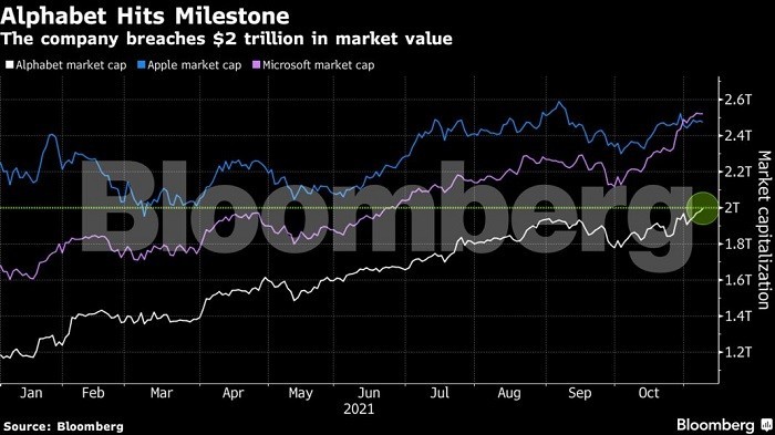 Στην ελιτ των ολιγάριθμων εταιρειών που έχουν ξεπεράσει σε αξία τα 2 τρισ. δολάρια εισέρχεται πλέον η Alphabet, έχοντας λάβει ώθηση από την ανάκαμψη της ψηφιακής διαφήμισης και την ανάπτυξη των δραστηριοτήτων της στο cloud.