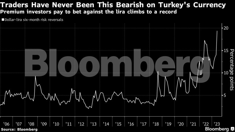 Τα στοιχήματα των επενδυτών εναντίον της τουρκικής λίρας έχουν αυξηθεί, με τις μετοχές και τα ομόλογα να έχουν καταγράψει παράλληλη πτώση, αφού οι επενδυτές είναι πεπεισμένοι πως η πιθανή νίκη του Ερντογάν στις εκλογές θα οδηγήσει σε κατάσταση «μία από τα ίδια» σε ό,τι αφορά το επίπεδο του πληθωρισμού στη χώρα και την περαιτέρω μείωση της ισοτιμίας του τουρκικού νομίσματος.