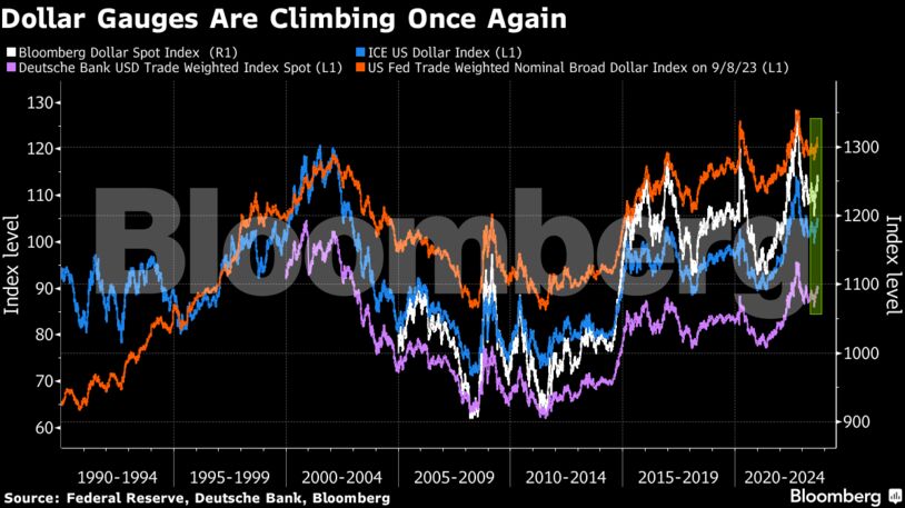 Οι συγκυρίες αυτές έχουν ωθήσει τον δείκτη Bloomberg Dollar Spot Index κοντά στα φετινά υψηλά, μετά από το ράλι-ρεκόρ των 8 τελευταίων εβδομάδων το οποίο ξεκίνησε στα μέσα Ιουλίου.