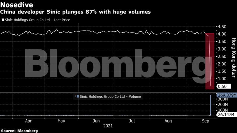 Σε αναστολή διαπραγμάτευσης της μετοχής της προχώρησε η κινεζική εταιρεία ανάπτυξης ακινήτων Sinic Holdings μετά από τις ισχυρότατες απώλειες κατά 87% στο ταμπλό.