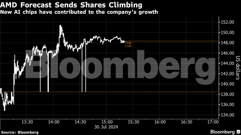 Οι μετοχές της Advanced Micro Devices Inc. σημείωσαν άνοδο αφού η εταιρεία παραγωγής μικροτσίπ εξέδωσε μια αισιόδοξη πρόβλεψη εσόδων, υπογραμμίζοντας ότι οι νέοι επεξεργαστές τεχνητής νοημοσύνης της ενισχύουν την ανάπτυξη.