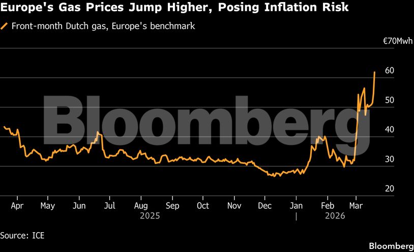 Η τελευταία άνοδος των τιμών της ενέργειας προήλθε από μια ιρανική πυραυλική επίθεση στο συγκρότημα Ras Laffan στο Κατάρ, η οποία προκάλεσε εκτεταμένες ζημιές στο μεγαλύτερο εργοστάσιο υγροποιημένου φυσικού αερίου στον κόσμο. Δύο εγκαταστάσεις που παράγουν το 17% των εξαγωγών LNG της χώρας, ή περίπου 13 εκατομμύρια τόνους ετησίως, επηρεάστηκαν και θα χρειαστούν τρία έως πέντε χρόνια για να επισκευαστούν, δήλωσε ο Διευθύνων Σύμβουλος της QatarEnergy.