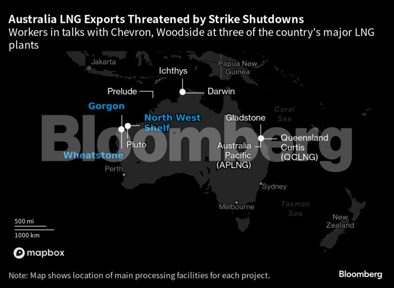 Η τελευταία κλιμάκωση των φόβων για τον εφοδιασμό προκλήθηκε από μια διαμάχη σχετικά με τις αμοιβές και τους όρους εργασίας σε αυστραλιανά εργοστάσια που ανήκουν στις Chevron Corp. και Woodside Energy Group Ltd., τα οποία αντιπροσωπεύουν πάνω από το 10% των παγκόσμιων προμηθειών υγροποιημένου φυσικού αερίου. Ενώ οι ιδιοκτήτες των εγκαταστάσεων κέρδισαν δισεκατομμύρια δολάρια από την αναταραχή που έστειλε τις τιμές του φυσικού αερίου σε επίπεδα ρεκόρ το περασμένο καλοκαίρι, οι εργαζόμενοί τους απαίτησαν να λάβουν και αυτοί υψηλότερες αποζημιώσεις, με τα εργατικά συνδικάτα να συνεχίζουν τις διαπραγματεύσεις αύριο Τρίτη.