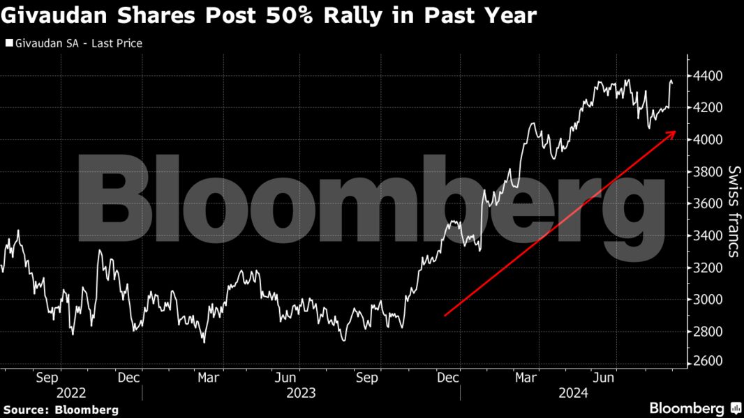 Σύμφωνα με το Bloomberg, η μετοχή της εταιρείας έχει σημειώσει ράλι 50% τον τελευταίο χρόνο, ξεπερνώντας κατά πολύ τα κέρδη του δείκτη της ελβετικής αγοράς την περίοδο αυτή, χάρη στην αυξανόμενη αισιοδοξία για την αύξηση των πωλήσεων. Επί του παρόντος, οι μετοχές βρίσκονται στα 4.331 ελβετικά φράγκα. η εξαγορά μιας εταιρείας που προμηθεύει τον τομέα των τροφών για κατοικίδια ζώα θα παράσχει ενδεχομένως στην Givaudan συστατικά, γεύσεις και προϊόντα που είναι ειδικά σχεδιασμένα για να κάνουν τις τροφές, τις λιχουδιές και τα συμπληρώματα διατροφής για κατοικίδια ζώα να έχουν καλύτερη γεύση, δήλωσε ο Andrier.