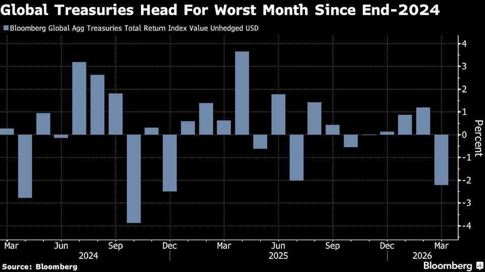 Ο δείκτης Bloomberg Global Aggregate Index, ο οποίος παρακολουθεί τις συνολικές αποδόσεις των κρατικών και εταιρικών ομολόγων επενδυτικής βαθμίδας, είναι πλέον σταθερός για το 2026. Ο δείκτης είχε σημειώσει άνοδο έως και 2,1% φέτος έως τις 27 Φεβρουαρίου, λίγο πριν ο Ντόναλντ Τραμπ εξαπολύσει επίθεση κατά του Ιράν, υπογραμμίζοντας πόσο γρήγορα η γεωπολιτική αναταραχή ανέτρεψε το κλίμα.