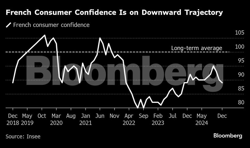 Η γαλλική καταναλωτική εμπιστοσύνη μειώθηκε απροσδόκητα τον Δεκέμβριο στο χαμηλότερο επίπεδο του τελευταίου έτους, προσθέτοντας ενδείξεις ότι η παρατεταμένη πολιτική και δημοσιονομική κρίση της χώρας επιβαρύνει τις οικονομικές προοπτικές.