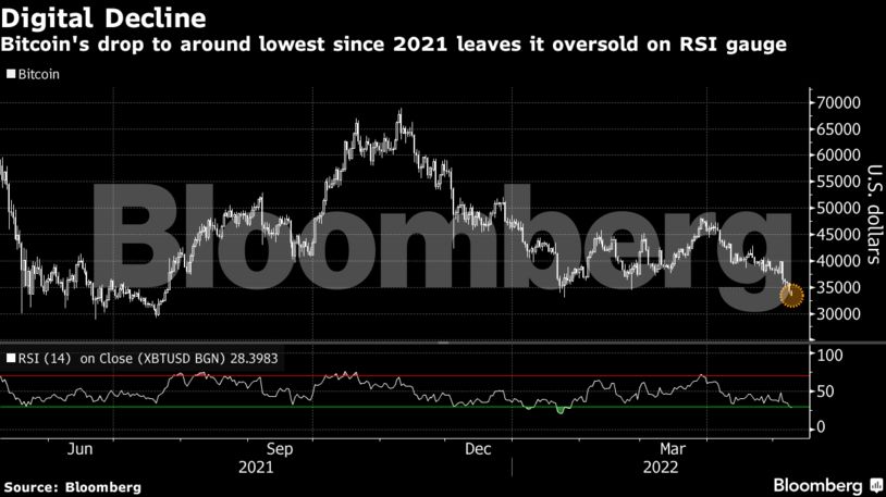 Σε χαμηλά του 2021 υποχωρούν τα κρυπτονομίσματα με το Bitcoin να σημειώνει πτώση έως και 3,3%, στις 33.406 δολάρια ενώ το Ether καταγράφει απώλειες 4,6%. Το Bitcoin μετά και το sell-off της Wall Street την προηγούμενη εβδομάδα, που οδήγησε το μεγαλύτερο ψηφιακό νόμισμα στον κόσμο σε αξία σε «βουτιά» σχεδόν 10% έχει χάσει 50% από το υψηλό του Νοεμβρίου του 2021 στα 67.802,30 δολάρια.