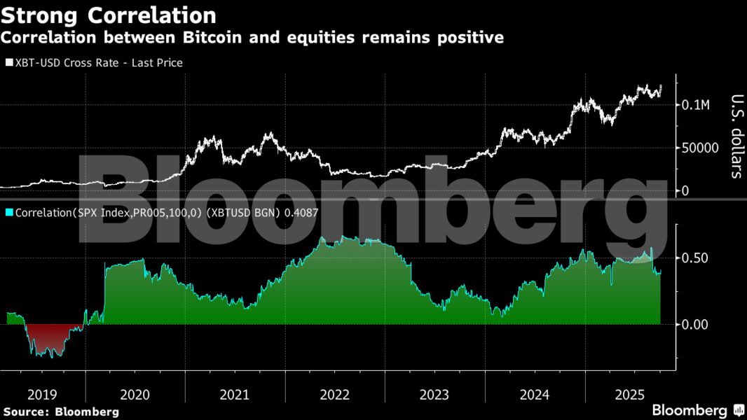 Η συσχέτιση του Bitcoin με τις μετοχές παραμένει θετική, γεγονός που ενισχύει την εικόνα του ως επενδυτικού εργαλείου που κινείται παράλληλα με το κλίμα της αγοράς. Την Παρασκευή, οι αμερικανικοί δείκτες άγγιξαν ιστορικά υψηλά, ενισχυμένοι από συμφωνίες στον τομέα της τεχνητής νοημοσύνης, παρά την ανησυχία για παρατεταμένη κυβερνητική αναστολή λειτουργίας.