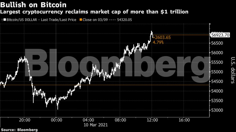 Ισχυρή άνοδο για τέταρτη συνεχόμενη ημέρα καταγράφει το Bitcoin, με τη ναυαρχίδα των κρυπτονομισμάτων να ενισχύει την αξία του πάνω από το 1 τρισ. δολάρια, εν μέσω αυξανόμενης αισιοδοξίας στις χρηματοπιστωτικές αγορές.