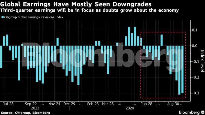 Η αύξηση των κερδών αναμένεται να επιβραδυνθεί στο 4,4% το γ’ τρίμηνο, προτού αυξηθεί κατά 10% τους τελευταίους τρεις μήνες του έτους. Δείκτης της Citigroup Inc. υπέδειξε ότι περισσότεροι αναλυτές έχουν υποβαθμίσει παρά αναβαθμίσει τις προσδοκίες τους από τα τέλη Ιουνίου.