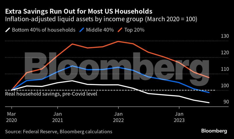 Στο επίκεντρο του αφηγήματος της ομαλής προσγείωσης βρίσκονται τα έξοδα των καταναλωτών. Δυστυχώς, τα οικονομικά στοιχεία υποδεικνύουν πως τα έξοδα αυτά δεν αποτελούν καλή ένδειξη για τη δημιουργία ή μη ύφεσης, ιδιαίτερα τη στιγμή που οι αποταμιεύσεις που οι καταναλωτές δημιούργησαν κατά τη διάρκεια της πανδημίας έχουν αρχίσει να στερεύουν.