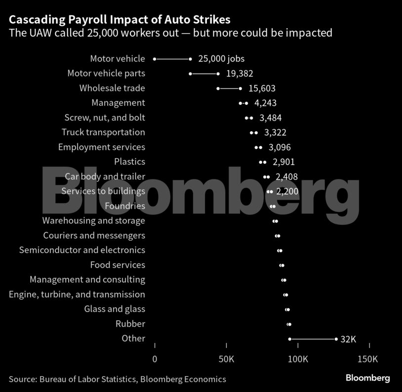 Όλα αυτά πριν καν προσμετρηθούν ορισμένα, αναμενόμενα σοκ. Πρώτο και καλύτερο η μαζική απεργία στις αμερικανικές αυτοκινητοβιομηχανίες η οποία συμπεριλαμβάνει 25.000 εργαζομένους.