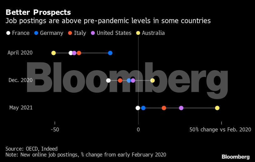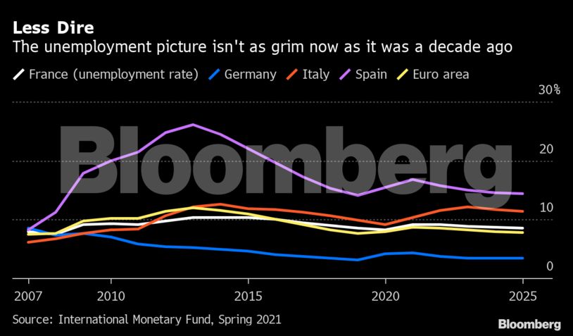 Οι ευρωπαϊκοί φόβοι πως η πανδημία μπορεί να προκαλέσει μόνιμες ζημίες στην αγορά εργασίας φαίνεται πως αρχίζουν να μοιάζουν πιο πολύ σαν εφιάλτη παρά πραγματικότητα.