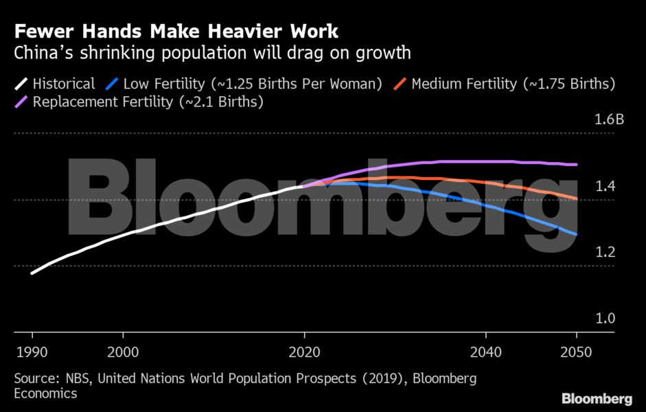 Έχοντας επίγνωση των κινδύνων, η Κίνα άλλαξε τακτική. Το 2016, το όριο αυξήθηκε σε δύο παιδιά. Φέτος, η κυβέρνηση ανακοίνωσε ότι επιτρέπονται τρεις γεννήσεις σε κάθε οικογένεια. Μέχρι το 2050, η Bloomberg Economics προβλέπει ότι η παραγωγικότητα της Κίνας θα έχει φτάσει το 70% του επιπέδου των ΗΠΑ.