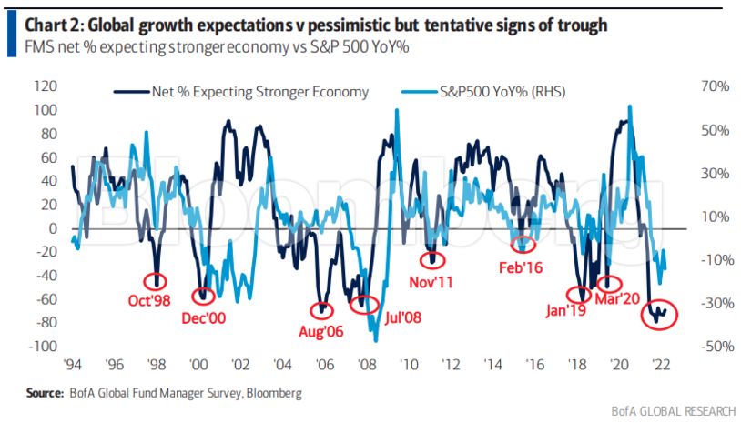 Σύμφωνα με τη δημοσκόπηση, οι επενδυτές αναμένουν πως οι μετοχές θα αντιμετωπίσουν ένα δύσκολο α’ εξάμηνο το 2023 πριν προχωρήσουν σε ανάκαμψη το β’ εξάμηνο. Πρόσφατη παράλληλη έρευνα του Bloomberg News, 134 διαφορετικών fund managers ανέδειξε πως οι επενδυτές αυτοί ανησυχούν για τη δημιουργία στασιμοπληθωρισμού στην παγκόσμια οικονομία.
