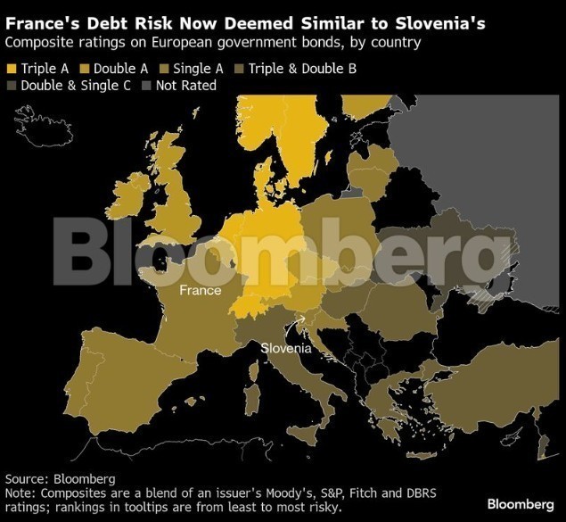 Η εκτίμηση της BofA έρχεται σε συνέχεια της πρόσφατης υποβάθμισης του γαλλικού αξιόχρεου από «ΑΑ-» σε «Α+» από τον οίκο S&P Global Ratings, η οποία αποτελεί πρόβλημα για τους πιο συντηρητικούς επενδυτές, που επιδιώκουν υψηλής βαθμολογίας τοποθετήσεις.