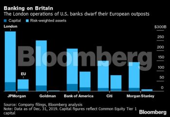 Oι πέντε κολοσσοί της Wall Street, JPMorgan, Goldman Sachs, Bank of America Corps, Citigroup Inc και Morgan Stanley, μέχρι σήμερα προτιμούσαν το Λονδίνο ως ευρωπαϊκή βάση. Αυτό πρόκειται να αλλάξει, αφού όλες έχουν πλάνα για μετακίνηση των περιουσιακών τους στοιχείων. Η JPMorgan, για παράδειγμα αναμένεται να μετακινήσει assets 200 δισεκατομμυρίων ευρώ στην ΕΕ. Η Φρανκφούρτη θα βγει κερδισμένη από τις κινήσεις αυτές, αφού τα μεγάλα τραπεζικά ιδρύματα που δεν εδρεύουν στη Γερμανία αναμένεται να μετακινήσουν περιουσιακά στοιχεία ύψους 397 δισεκατομμυρίων ευρώ στη χώρα, φτάνοντας τα 675 δισ., συνολικά.