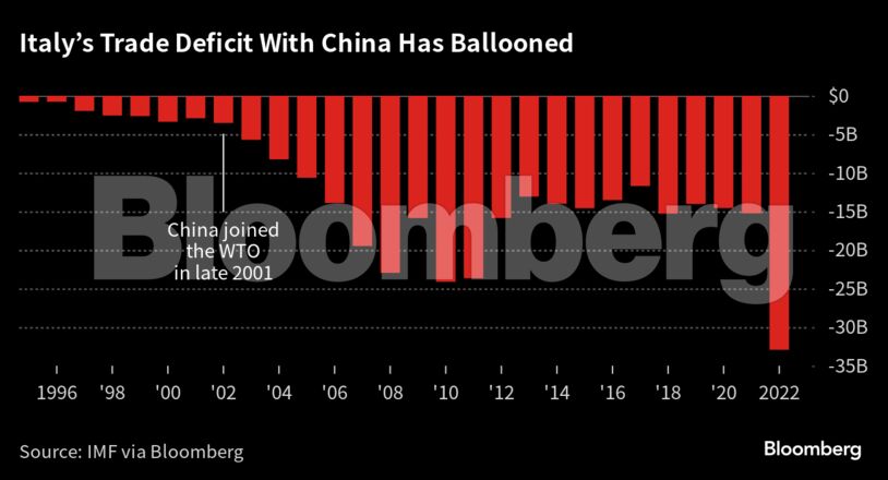 «Χωρίς να έχει υπογράψει κάποια δεσμευτική συμφωνία, η Γαλλία έχει πουλήσει αεροσκάφη στο Πεκίνο αξίας δεκάδων δισ. τα τελευταία τρία χρόνια», ανέφερε πρόσφατα ο Ιταλός ΥΠΕΘΑ, Γκουίντο Κροζέτο, προσθέτοντας πως «εμείς, με δεσμευτικές συμφωνίες, έχουμε εξάγει απλά πολλά πορτοκάλια και οι Κινέζοι έχουν τριπλασιάσει τις εξαγωγές τους προς την χώρα μας». Οι ιταλικές εξαγωγές προς την Κίνα έχουν αυξηθεί κατά 5%, μένοντας πίσω από τις αντίστοιχες γαλλικές και γερμανικές.