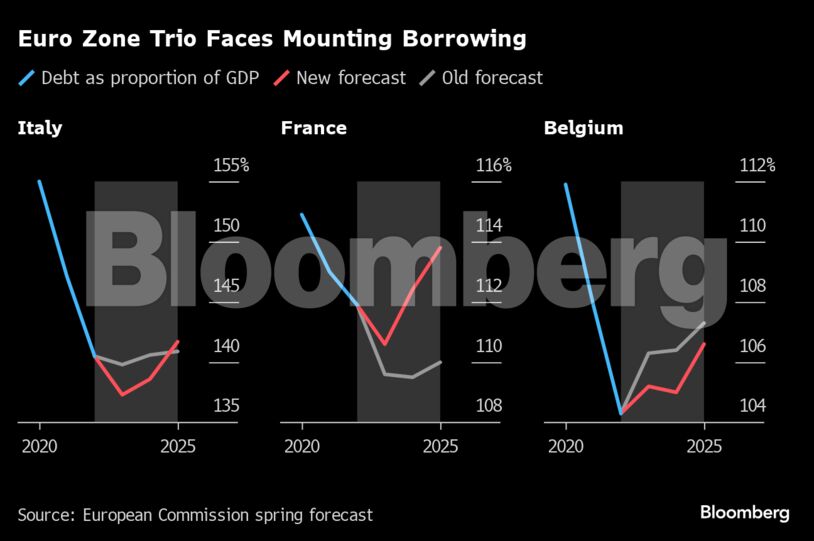 Ο λόγος του χρέους της Γαλλίας προς το ακαθάριστο εγχώριο προϊόν αναμένεται ήδη να σκαρφαλώσει σε πάνω από 112% το επόμενο έτος, έναντι άνω του 138% για την Ιταλία.