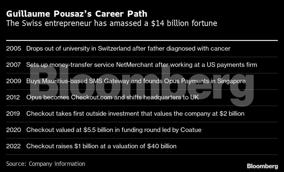 Ο Ελβετός επιχειρηματίας Γκιγιόμ Πουσάζ και ιδρυτής της νεοφυούς επιχείρησης Checkout.com χαρακτηρίζεται ως ένας από τους πλουσιότερους ανθρώπους της χώρας του, με κέρδη που ξεπερνούν τα 14 δισεκατομμύρια δολάρια.