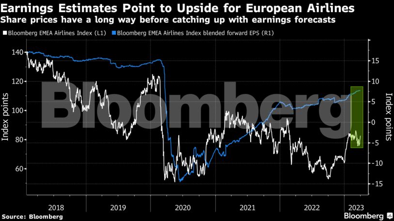 Βασισμένες ακόμα και σε συντηρητικές εκτιμήσεις απόδοσης, μείωσης των τιμών καυσίμων και του συναφούς λειτουργικού κόστους των εταιρειών αυτών, οι αναλυτές Τζέιμι Ροουμπόθαμ και Άντι Τσου της Deutsche Bank εκτιμούν πως «τα εταιρικά κέρδη των αεροπορικών το 2023 θα είναι 20% υψηλότερα από τα αναμενόμενα. Δεν μπορούμε να αγνοήσουμε το θετικό μομέντουμ». Οι αναλυτές αναβάθμισαν την αξιολόγηση των μετοχών των Air France-KLM SA, Consolidated Airlines Group SA (Βritish Airways) και Lufthansa από «hold» σε «buy».