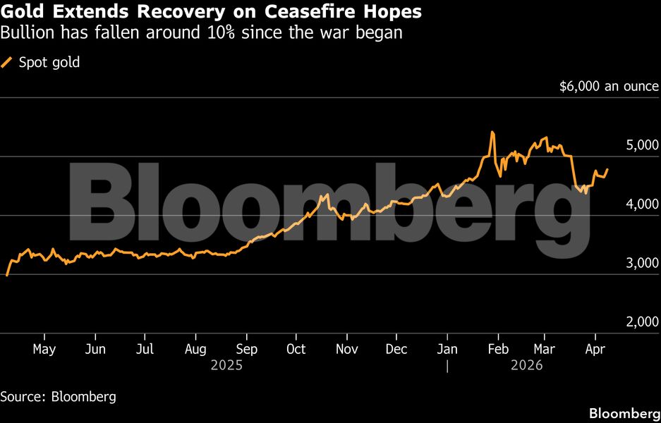 Ο χρυσός έχει υποχωρήσει περίπου 9% από την έναρξη του πολέμου στα τέλη Φεβρουαρίου. Η πρόσφατη μερική ανάκαμψη τροφοδοτήθηκε από τις ελπίδες για εκεχειρία, καθώς και από τις προσδοκίες ότι η επιβράδυνση της παγκόσμιας οικονομίας θα αντισταθμίσει τα σενάρια για σταθερά ή υψηλότερα επιτόκια, σύμφωνα με το Bloomberg.