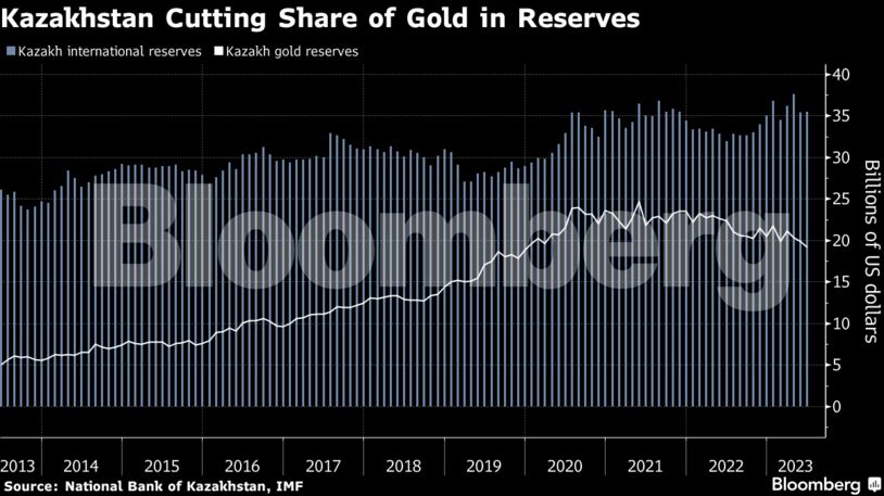 Η κεντρική τράπεζα του Καζακστάν προχώρησε σε πώληση των αποθεμάτων χρυσού της στα τέλη του α’ τριμήνου και τις αρχές του β’ τριμήνου του 2023, «όταν οι τιμές βρίσκονταν σε ιστορικό υψηλό». Σημειωτέον πως, στις αρχές Μαΐου οι τιμές του χρυσού πλησίασαν το ρεκόρ υψηλό των $2.075,47/ουγγιά το οποίο είχε τεθεί το 2020.