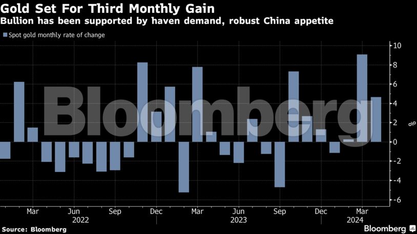 Παρά την αναβολή του χρονοδιαγράμματος για τις αναμενόμενες περικοπές της Fed, το πολύτιμο μέταλλο έχει σημειώσει άνοδο άνω του 13% φέτος εν μέσω ισχυρών αγορών από τις κεντρικές τράπεζες, ισχυρής ζήτησης από τις ασιατικές αγορές, ιδίως την Κίνα, και αυξημένων γεωπολιτικών εντάσεων από την Ουκρανία έως τη Μέση Ανατολή.