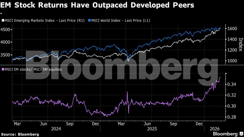 Ένας δείκτης της Bloomberg για τα ομόλογα τοπικού νομίσματος των αναδυόμενων αγορών έχει αποδώσει 2,2% μέχρι στιγμής φέτος, μετά από ετήσιες αποδόσεις 8,5% πέρυσι, που ήταν οι καλύτερες από το 2017. Ένας παρόμοιος δείκτης που παρακολουθεί τα ομόλογα των κρατών σε δολάρια έχει ανέβει 1,7% το 2026, μετά από αύξηση 13% πέρυσι.