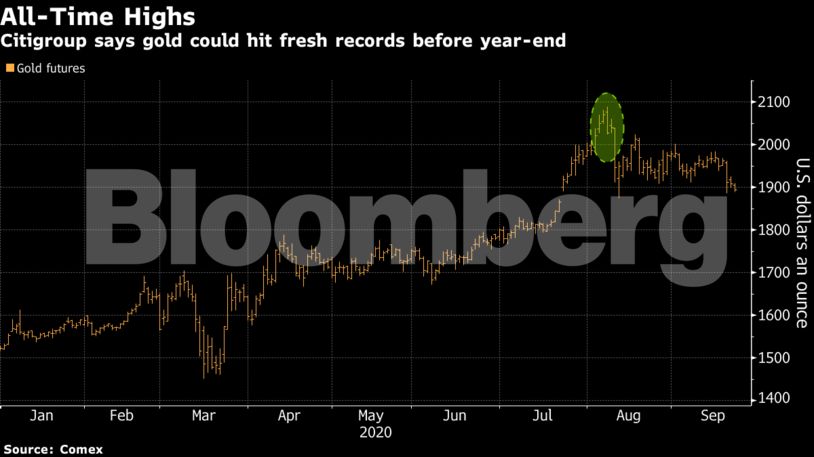 Ο χρυσός μπορεί να καταγράψει ένα νέο ρεκόρ πριν το τέλος του έτους, βοηθούμενος εν μέρει από τους κινδύνους που ενέχουν οι προεδρικές εκλογές των ΗΠΑ, σύμφωνα με την Citigroup Inc.