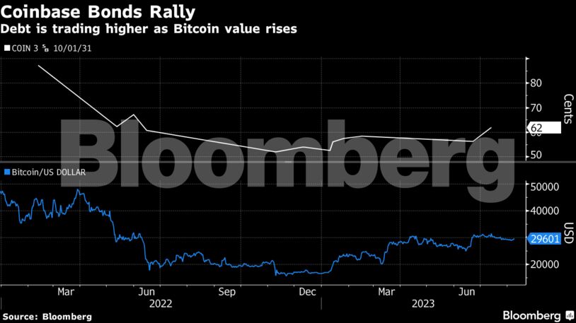 Το bitcoin έχει καταγράψει ράλι αυτή την εβδομάδα, πλησιάζοντας το φετινό υψηλό των $31.386 το οποίο πέτυχε στα μέσα Ιουλίου. Τα ομόλογα τα οποία προσπαθεί να επαναγοράσει η Coinbase είχαν αξία 62 σεντ/δολάριο την Δευτέρα, από χαμηλό των 52 σεντ τον Νοέμβριο.