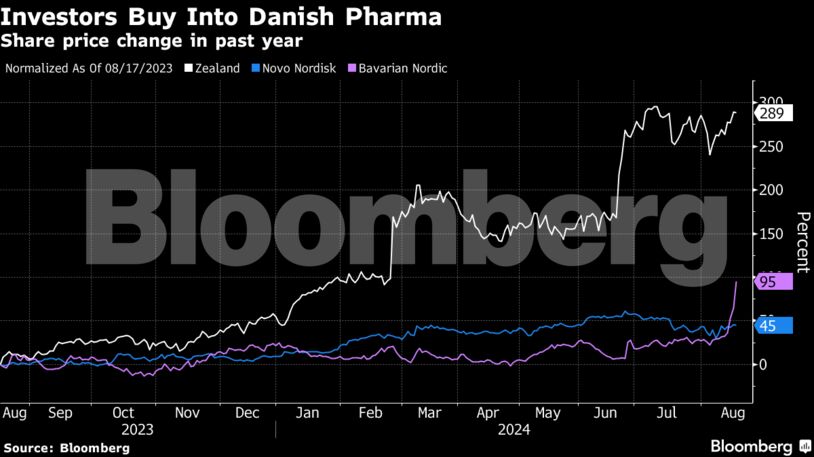 «Έχουμε απόθεμα και έχουμε τις δυνατότητες», δήλωσε στο Bloomberg νωρίτερα αυτή την εβδομάδα ο διευθύνων σύμβουλος της Bavarian, Πολ Τσάπλιν, διαβεβαιώνοντας ότι η εταιρεία μπορεί να παράσχει 10 εκατομμύρια δόσεις μέχρι το τέλος του 2025. «Αυτό που μας λείπει είναι οι παραγγελίες». Εκτός από το άλμα της Bavarian , οι επενδυτές συρρέουν στον τομέα των φαρμάκων της Δανίας. Η Novo έχει κερδίσει το ένα τρίτο μέχρι στιγμής φέτος και η Gubra A/S – μια μικρότερη εταιρεία που αναπτύσσει ένα φάρμακο για την παχυσαρκία – έχει δει την αξία της να πενταπλασιάζεται. Η αξία της Zealand Pharma έχει υπερδιπλασιαστεί και είναι ενδεικτικό για το πώς ο κλάδος των φαρμάκων της Δανίας απολαμβάνει μερίδιο από τη δόξα της Novo. Μια πρόσφατη αύξηση κεφαλαίου 1 δισεκατομμυρίου δολαρίων υπερκαλύφθηκε σημαντικά σε μόλις τρεις ώρες, παρά το γεγονός ότι η Zealand ήταν σχετικά άγνωστη στη Δανία, πολύ λιγότερο στη Wall Street.