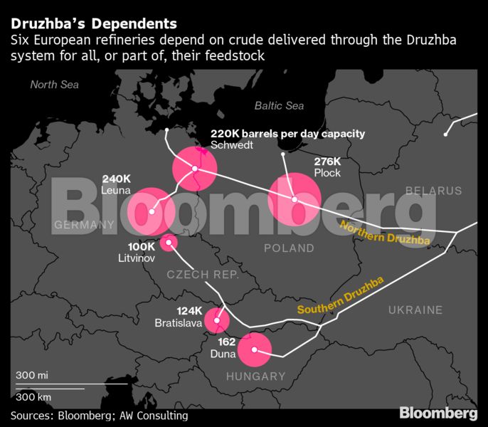 Για να συμμορφωθεί με το σχεδιαζόμενο εμπάργκο της ΕΕ, η κυβέρνηση Σολτς αξιλολογεί ορισμένες «δύσκολες» λύσεις, όπως ο έλεγχος του διυλιστηρίου κατά το πρότυπο στης γερμανικής μονάδα της Gazprom PJSC. Αλλά μια αλλαγή ιδιοκτησίας δεν θα έλυνε το κύριο ζήτημα: την αντικατάσταση των 12 εκατομμυρίων τόνων αργού που λαμβάνει το διυλιστήριο κάθε χρόνο μέσω του αγωγού Druzhba, που πήρε το όνομά του από τη ρωσική λέξη για τη «φιλία».