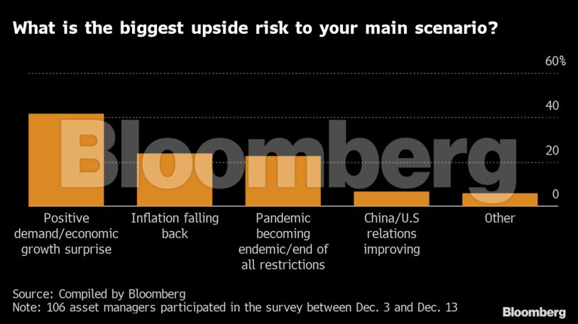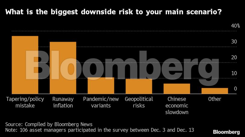 Το μεγαλύτερο ποσοστό των ερωτηθέντων απάντησαν πως η πληθωριστική αύξηση και οι επιθετικές κινήσεις των κεντρικών τραπεζών αποτελούν τους δύο κύριους λόγους για ανησυχία το 2022.