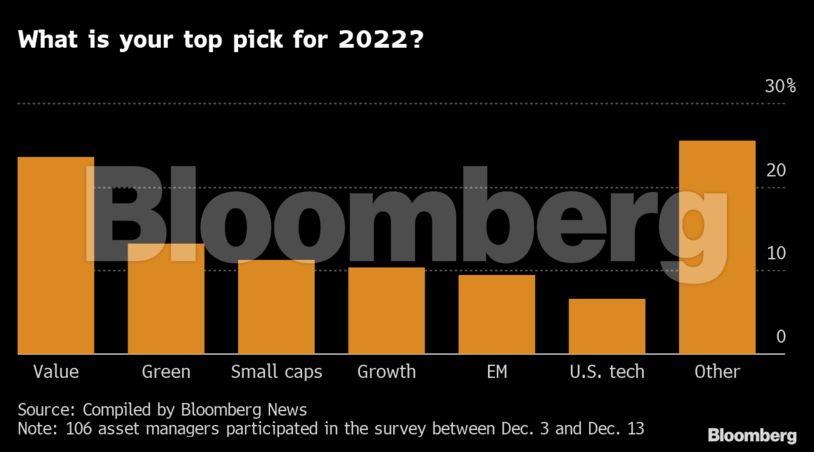 Με τη μετα-πανδημική ανάκαμψη να έχει φτάσει στο ζενίθ της, δημοσκόπηση δειγματοληπτικού μεγέθους μεταξύ 106 θεσμικών επενδυτών υποδεικνύει πως οι φθηνότερες μετοχές θα ξεπεράσουν σε απόδοση τις αντίστοιχες που έχουν ήδη επιδείξει ανάπτυξη φέτος. Αν και το ρίσκο της πανδημίας και των συναφών κρίσεων παραμένει, το 40% των ερωτηθέντων απάντησαν πως η οικονομική ανάπτυξη του 2022 θα αποτελέσει καταλύτη για τη δημιουργία θετικού προσήμου στις αγορές.
