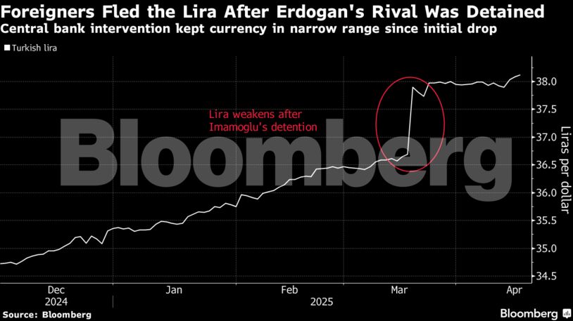 Από τότε που ο δήμαρχος της Κωνσταντινούπολης Εκρέμ Ιμάμογλου -που θεωρείται πιθανός αντίπαλος του Ερντογάν στις προεδρικές εκλογές- συνελήφθη στα μέσα Μαρτίου, προκαλώντας μαζικές διαδηλώσεις, η κεντρική τράπεζα έχει αντλήσει σχεδόν 50 δισεκατομμύρια δολάρια από τα αποθεματικά της για να ανακόψει τις απώλειες της λίρας. Ανακοίνωσε επίσης μια αιφνιδιαστική αύξηση του δευτερογενούς επιτοκίου της. Οι επιπτώσεις σε όλες τις αγορές από τα σχέδια του προέδρου των ΗΠΑ Ντόναλντ Τραμπ για τους δασμούς αύξησαν την πίεση στην Τουρκία.