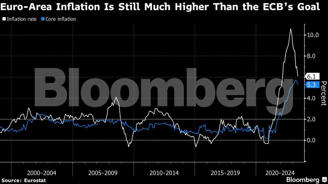 Ο πληθωρισμός στην περιοχή έχει υποχωρήσει από την κορύφωση του 10,6% τον Οκτώβριο, αλλά εξακολουθεί να είναι υπερτριπλάσιος του στόχου της ΕΚΤ για 2%. Οι σφιχτές χρηματοπιστωτικές συνθήκες -που προκλήθηκαν από έναν άνευ προηγουμένου κύκλο αυξήσεων κατά 400 μονάδες βάσης από τον Ιούλιο- και η χαλάρωση των περιορισμών στην πλευρά της προσφοράς σημαίνουν ότι ο ρυθμός θα συνεχίσει να επιβραδύνεται και ότι «η σύγκλιση προς τον στόχο προβλέπεται γύρω στα μέσα του 2025», ανέφερε το ταμείο με έδρα την Ουάσινγκτον.
