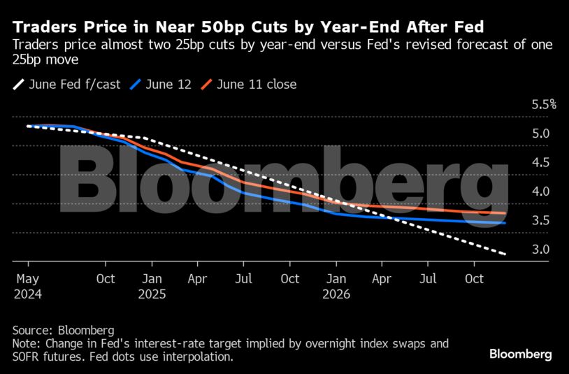 Ο Πάουελ φάνηκε να επικροτεί τον σκεπτικισμό της αγοράς υποβαθμίζοντας τη σημασία των προβλέψεων για τα επιτόκια, λέγοντας ότι η πραγματική πορεία θα εξαρτηθεί από τα μελλοντικά οικονομικά δεδομένα. Ο ίδιος υποστήριξε ότι τα στοιχεία για τον πληθωρισμό του Μαΐου ήταν «ευπρόσδεκτα» και οι αξιωματούχοι «ελπίζουν για περισσότερα παρόμοια αποτελέσματα».